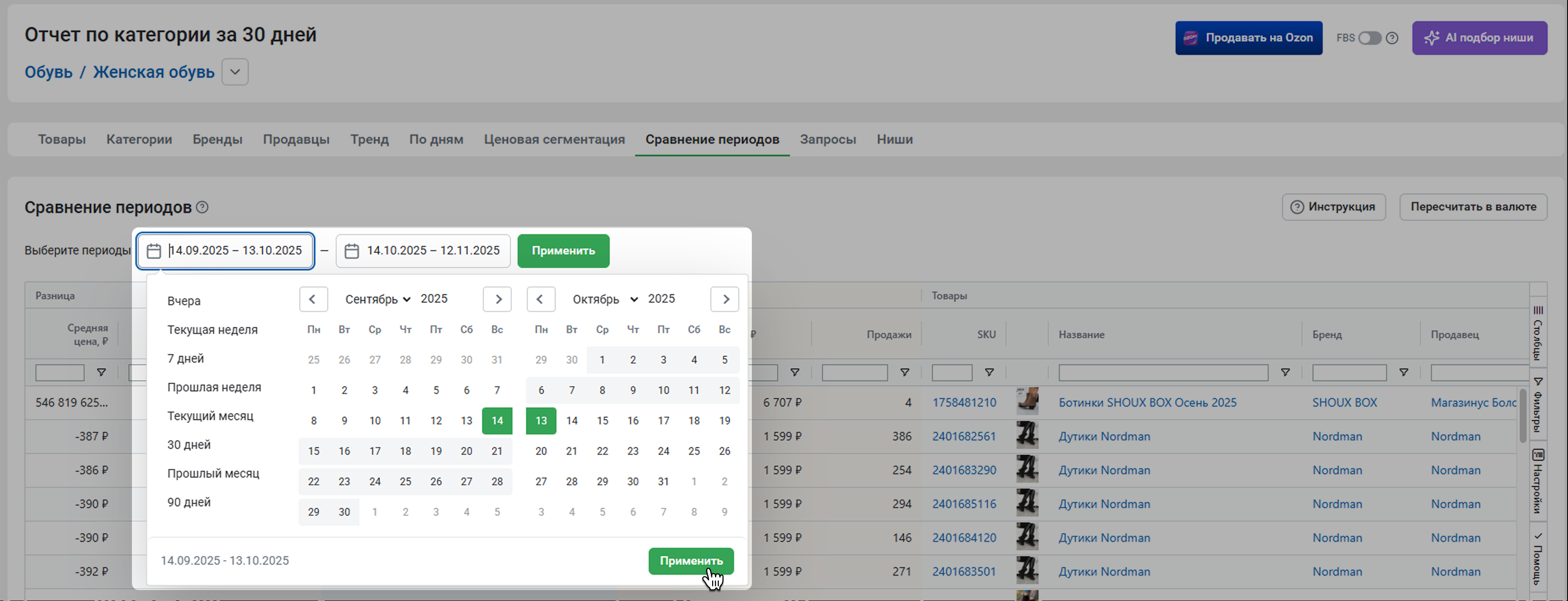 Когда периоды для сравнения выбраны, нажмите Применить.