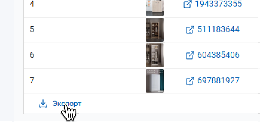 Чтобы загрузить таблицу для дальнейшей работы, нажмите Экспорт.