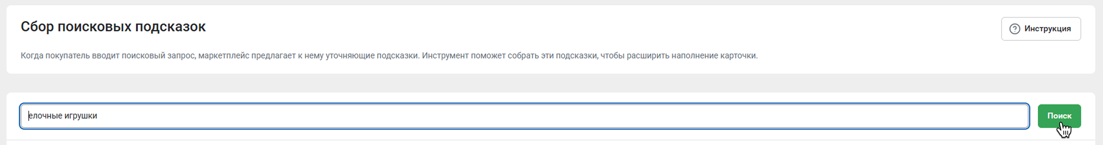 Когда покупатель вводит запрос на Wildberries или Ozon, маркетплейс предлагает уточняющие подсказки. Инструмент Сбор поисковых подсказок соберет все возможные подсказки за вас.