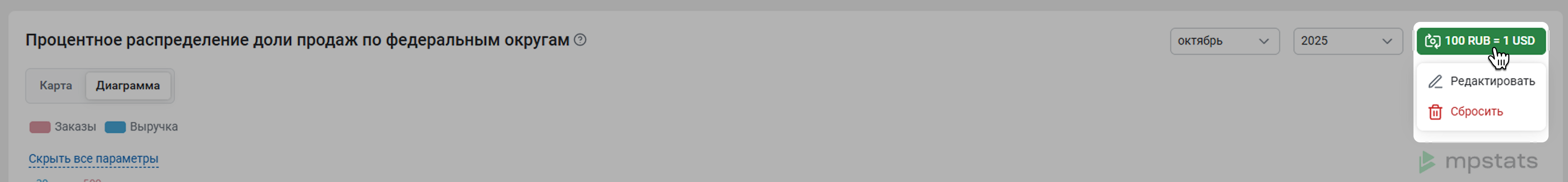 Указанный вами курс отобразится справа над таблицей. Если вы нажмете на него, откроется меню. Нажмите Редактировать, если нужно изменить курс и пересчитать показатели. Чтобы вернуть таблицу к изначальному виду, нажмите Сбросить.