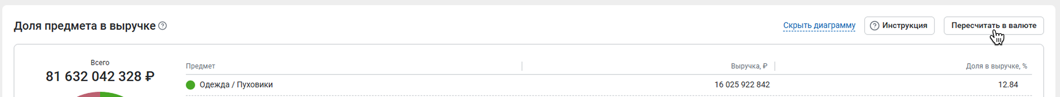 Выберите валюту, укажите курс к рублю и нажмите Применить. Все показатели в таблице, которые относятся к валюте, пересчитаются по указанному курсу. Значка валюты в таблице не будет.