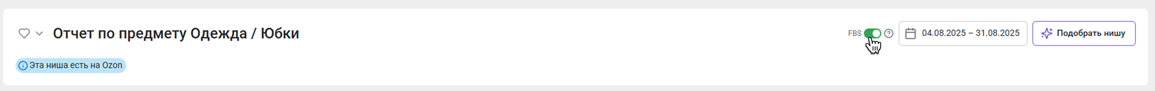 По умолчанию показываем данные только по товарам со складов маркетплейса. Если вы активируете переключатель FBS, статистика по товарам будет отображаться полностью (и по FBO, и по FBS).