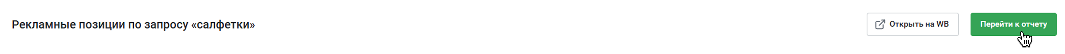 Если вы нажмете Открыть на WB, то перейдете на страницу Wildberries с выдачей по своему запросу. Чтобы увидеть детальную информацию о запросе, нажмите Перейти к отчету. Подробнее об отчете рассказали в статье Результаты поиска SERP.