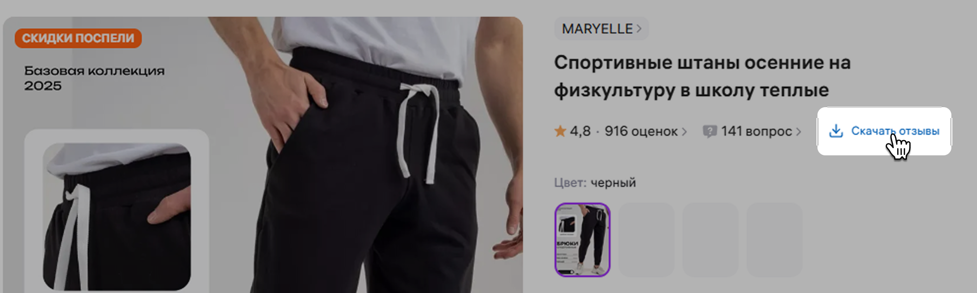 Вы можете загрузить все отзывы на товар. Для этого нажмите Скачать отзывы.