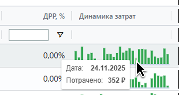 Наведите курсор на график, чтобы посмотреть затраты за конкретный день.